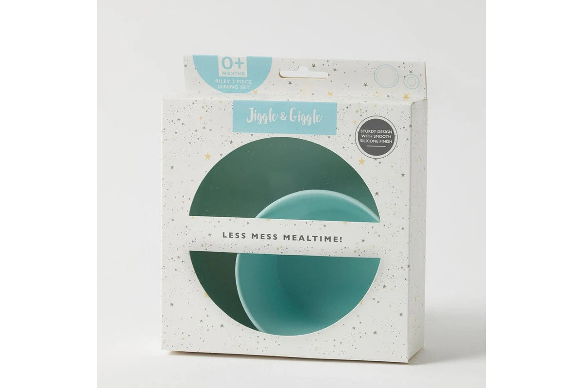 2pc Jiggle & Giggle Riley Silicone Dining Baby/Todler Dinnerware Blue
