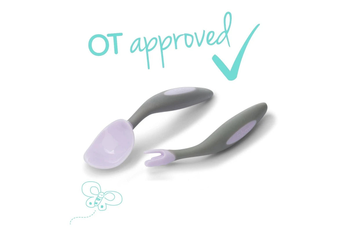 Our cutlery set has been designed with a leading paediatric occupational therapist (OT) as the ideal toolkit for tots who are ready to self feed. The unique spoon shape acts as shovel helping little ones to scoop up their food, even with a flat plate.
