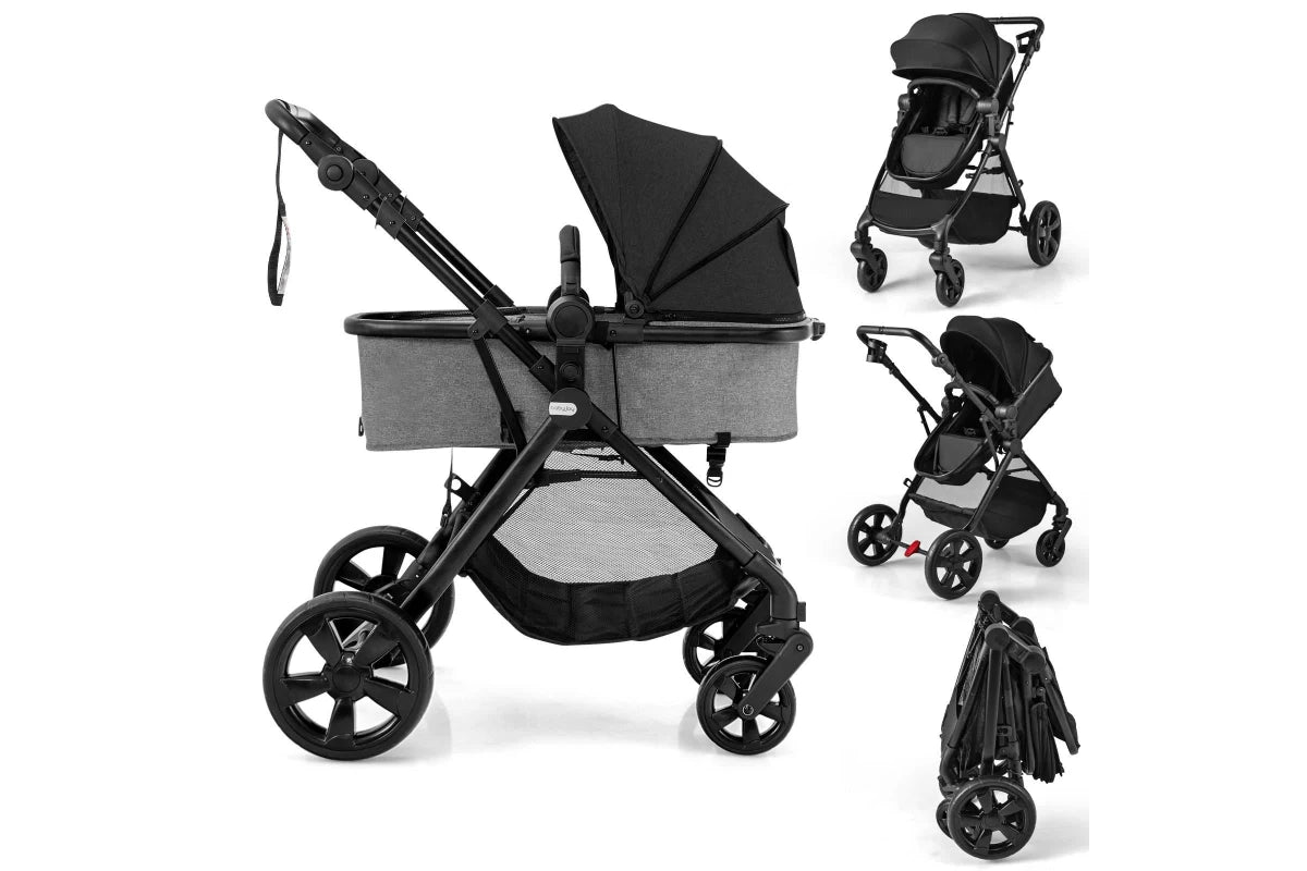 Costway 2in1 Convertible Pram Portable Folding Stroller Lightweight Stroller w/Storage Bag Black