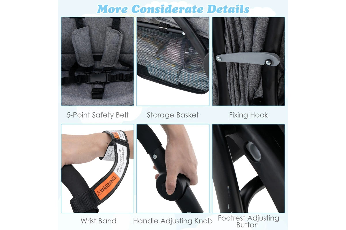 Costway Stroller Tandem Twin Pram Travel Pushchair w/Adjustable Canopy & Footrest & 5-Point Harness & Storage Basket