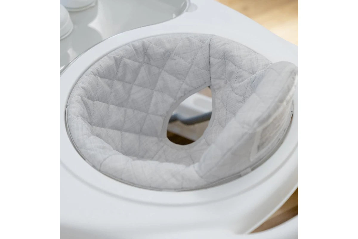 Large tray with removable, dishwasher safe insert, machine washable seat pad, wipeable toys for easy cleaning